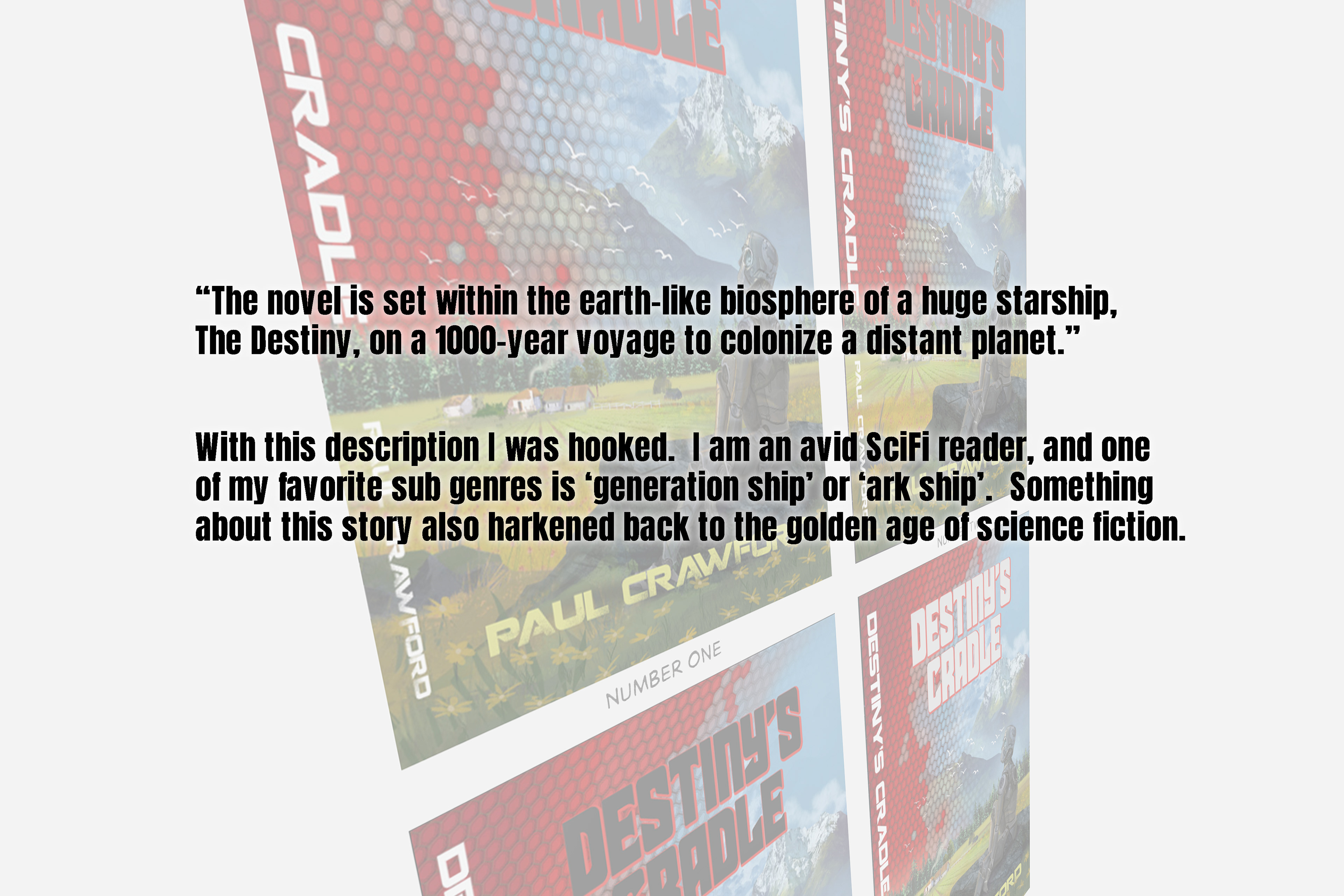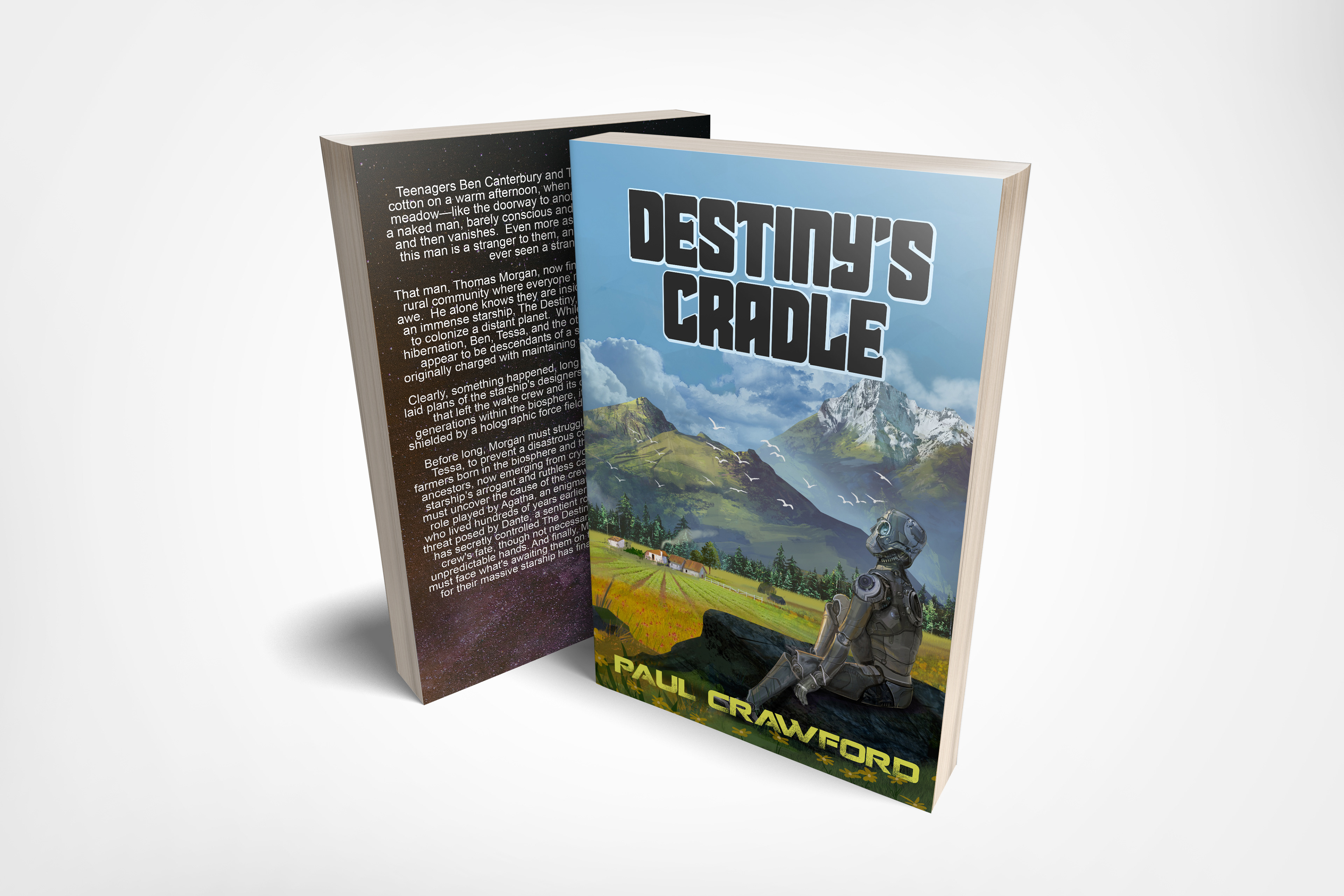Book cover design for the science fiction thriller, Destiny's Cradle by Paul Crawford.